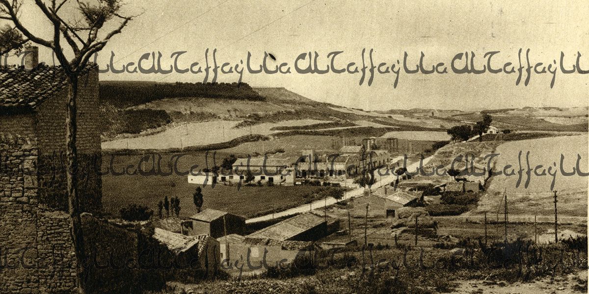 La carretera de Miranda vista desde el cerro de Santa Lucía. Vemos la Cooperativa Vinícola, construida en 1917 y a la izquierda una casa parece sustentarse en un antiguo cubo de la muralla, que subía por ese lado hasta el antiguo castillo.