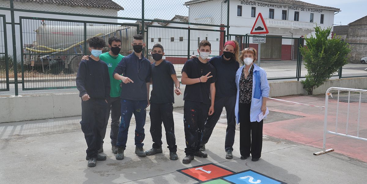 Un grupo de alumnos de los programas formativos PCA de la Fundación Ilundain – Haritz Berri han pintado una serie de juegos tradicionales en el Colegio Público Río Arga de Berbinzana.